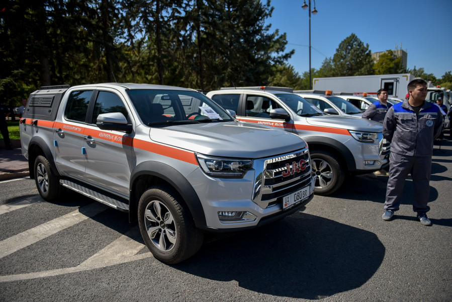Так, для муниципальных предприятий «Бишкекводоканал» (21), «Бишкекасфальтсервис» (16), «Бишкекгорлифт» (2), «Бишкекский городской транспорт» (6), муниципальной инспекции (20) и управления по контролю за землепользованием (10) передали 75 единиц спецтехники, среди которых автовышка, самосвал, эвакуатор, погрузчик, водовоз, а также служебные машины Chevrolet Cobalt и пикап.