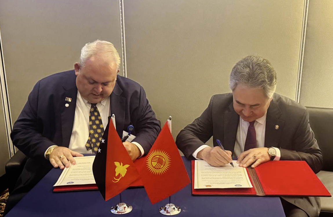 На полях 80-й сессии Генеральной Ассамблеи ООН в городе Нью-Йорке 24 сентября 2025 года состоялась встреча министра иностранных дел Кыргызской Республики Жээнбека Кулубаева с министром иностранных дел Папуа – Новой Гвинеи Джастином Ткаченко. Об этом сообщает МИД КР.