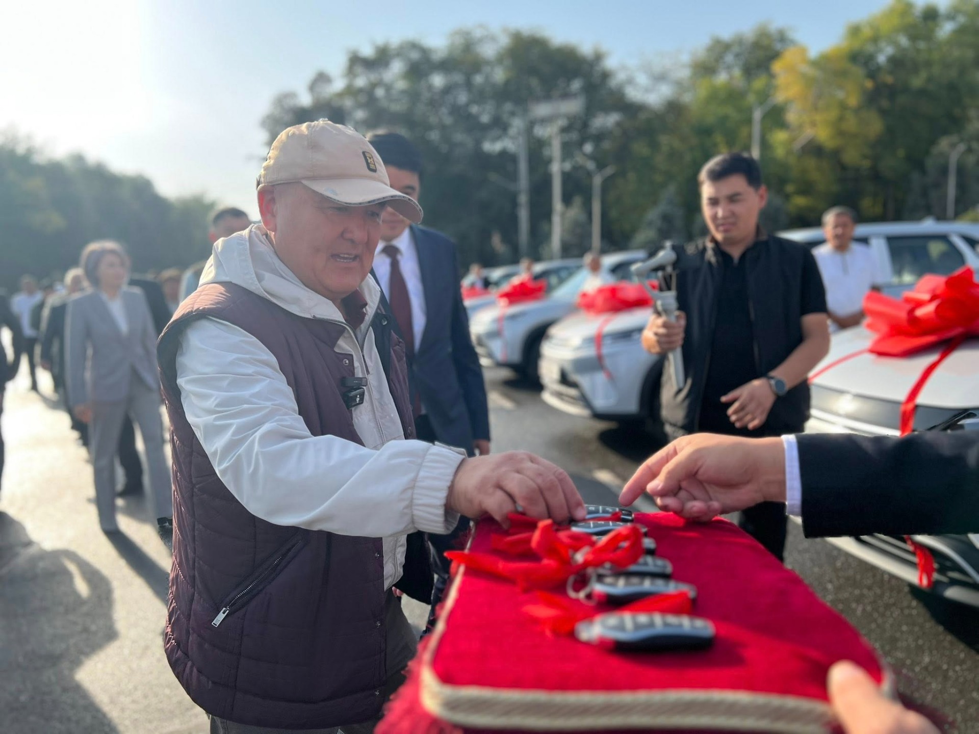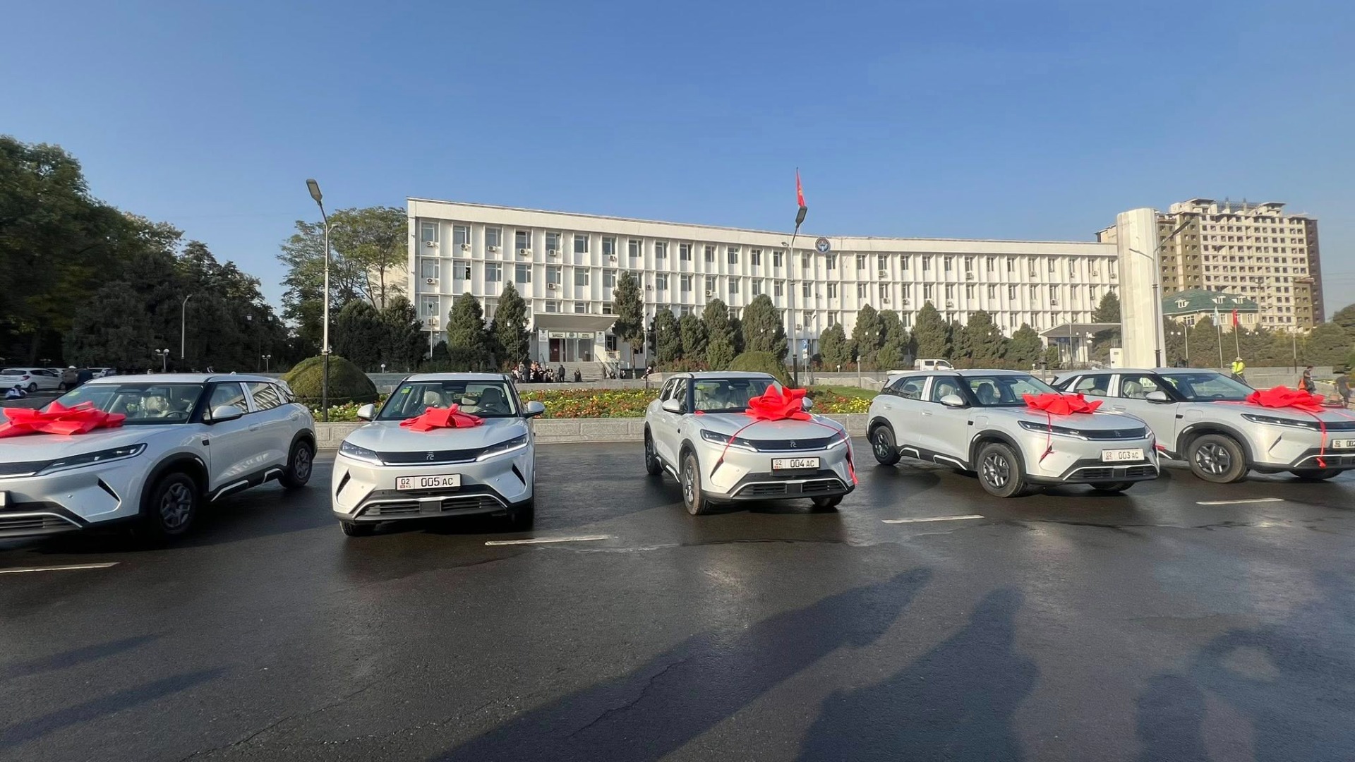 Сегодня председателю городского кенеша, заместителям мэра и руководителю аппарата мэрии передали шесть новых электромобилей.