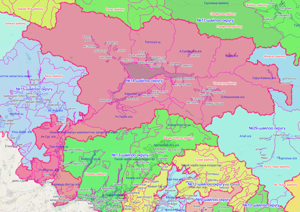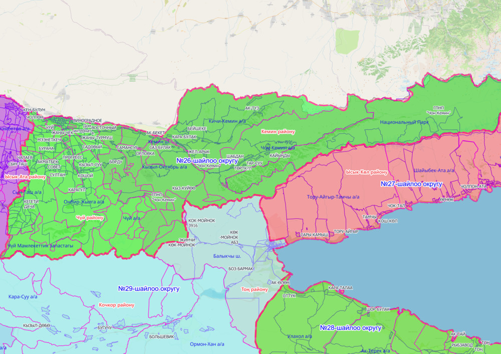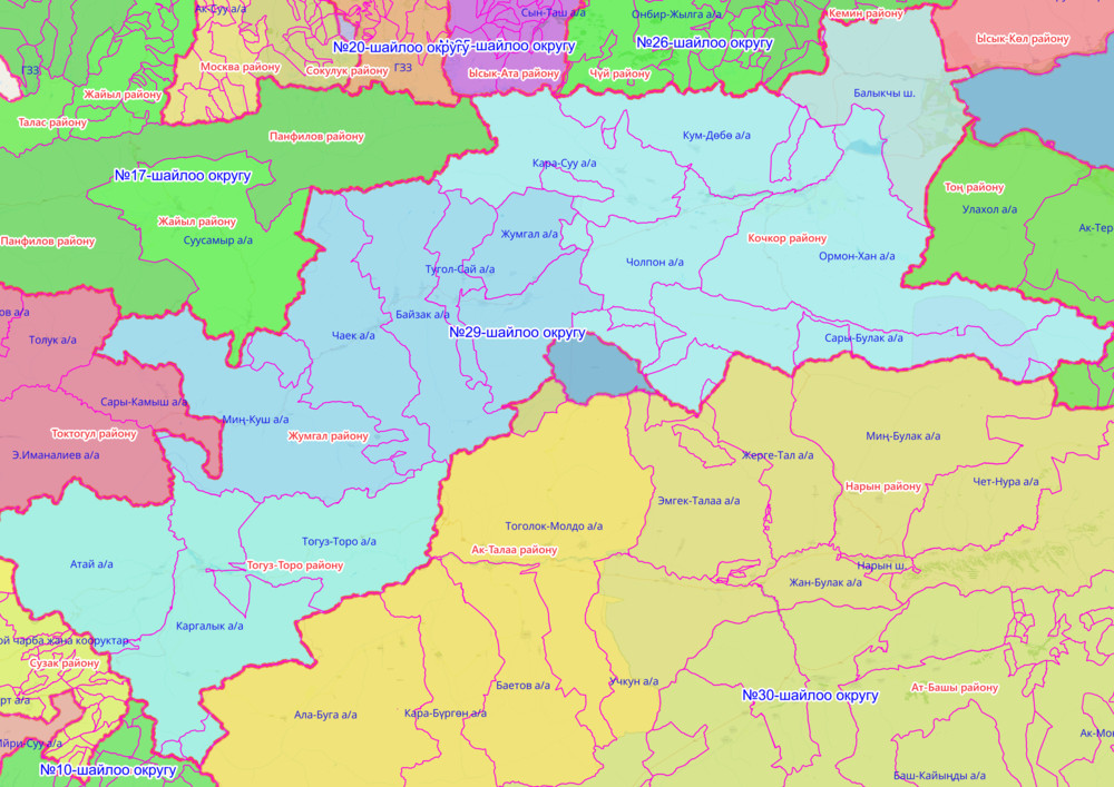 Центральная избирательная комиссия Кыргызской Республики представила обновленную карту избирательных округов. Документ опубликован на официальном сайте ЦИК.