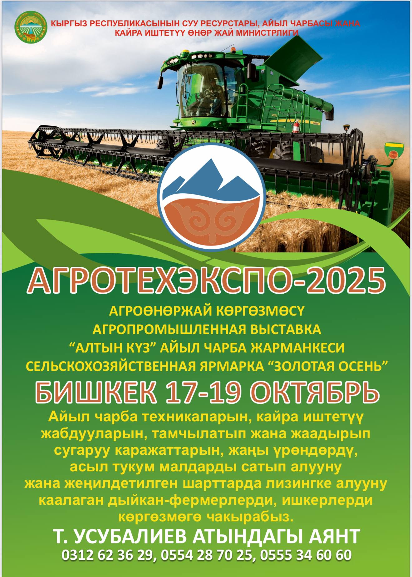 На площади имени Турдакуна Усубалиева в Бишкеке в честь Дня работников сельского хозяйства Кыргызской Республики 17-19 октября пройдут республиканская агропромышленная выставка «АгроТехЭкспо — 2025» и сельскохозяйственная продовольственная ярмарка «Алтын күз». Об этом сообщает Минсельхоз.