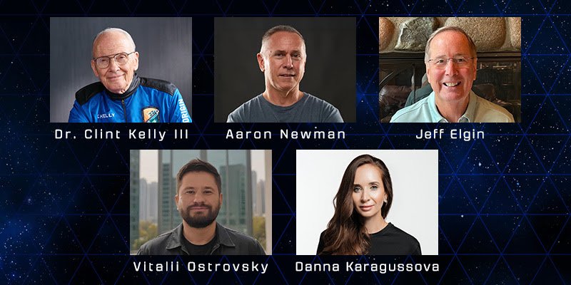 В экипаж также вошли Джефф Элджин, доктор Клинт Келли III, Аарон Ньюман, Виталий Островский и шестой участник, пожелавший остаться анонимным. Клинт Келли ранее уже совершал полет на корабле New Shepard в рамках миссии NS-22.