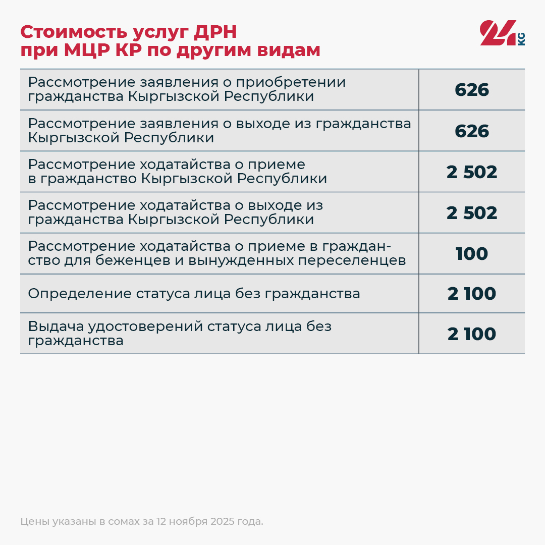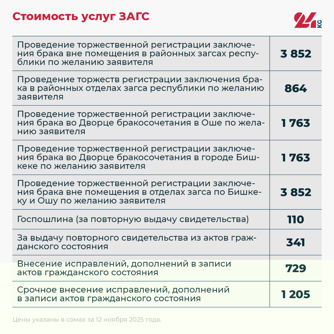 Редакция 24-kg.com собрала актуальные данные о стоимости оформления основных документов и актов гражданского состояния.
