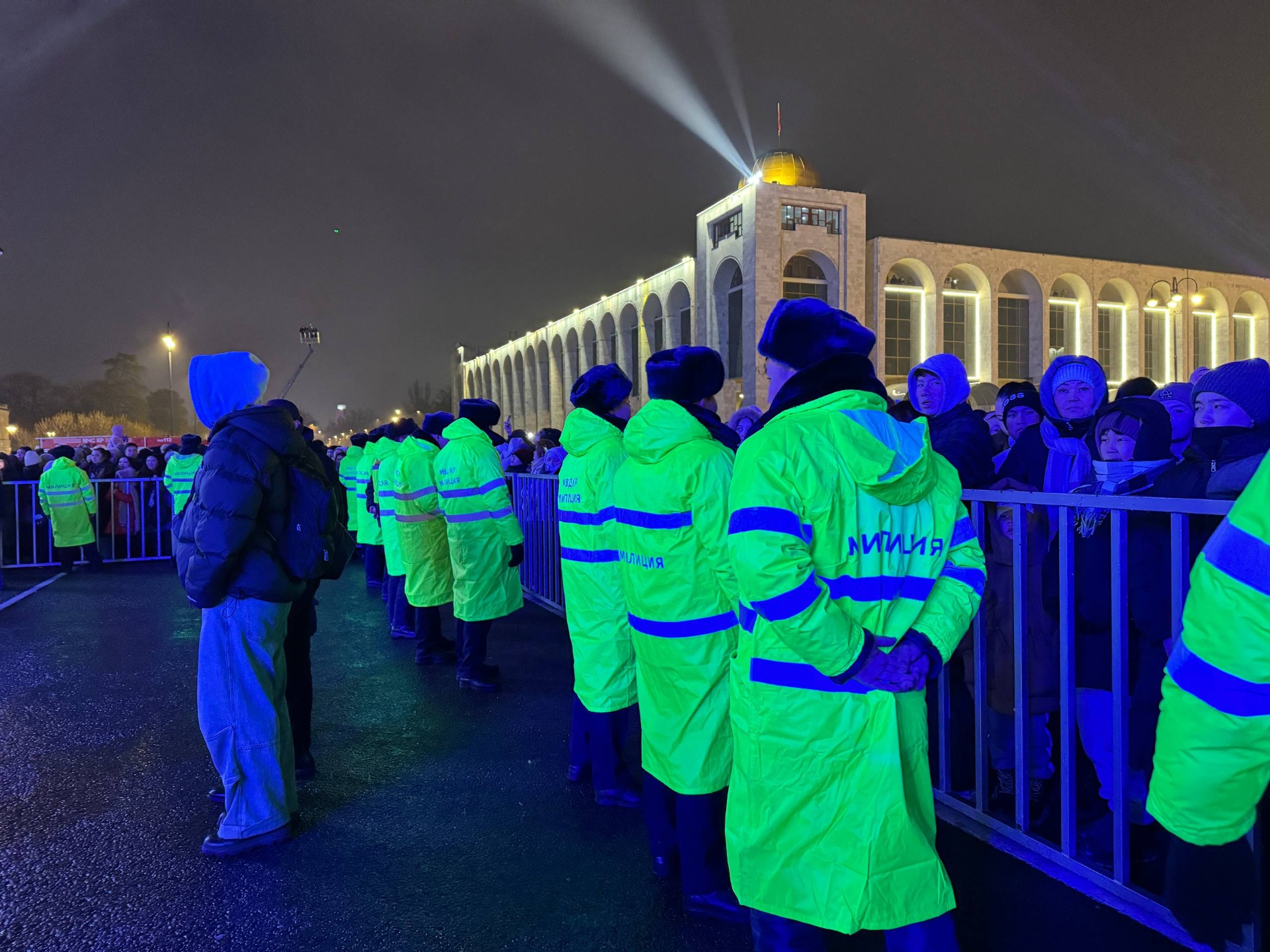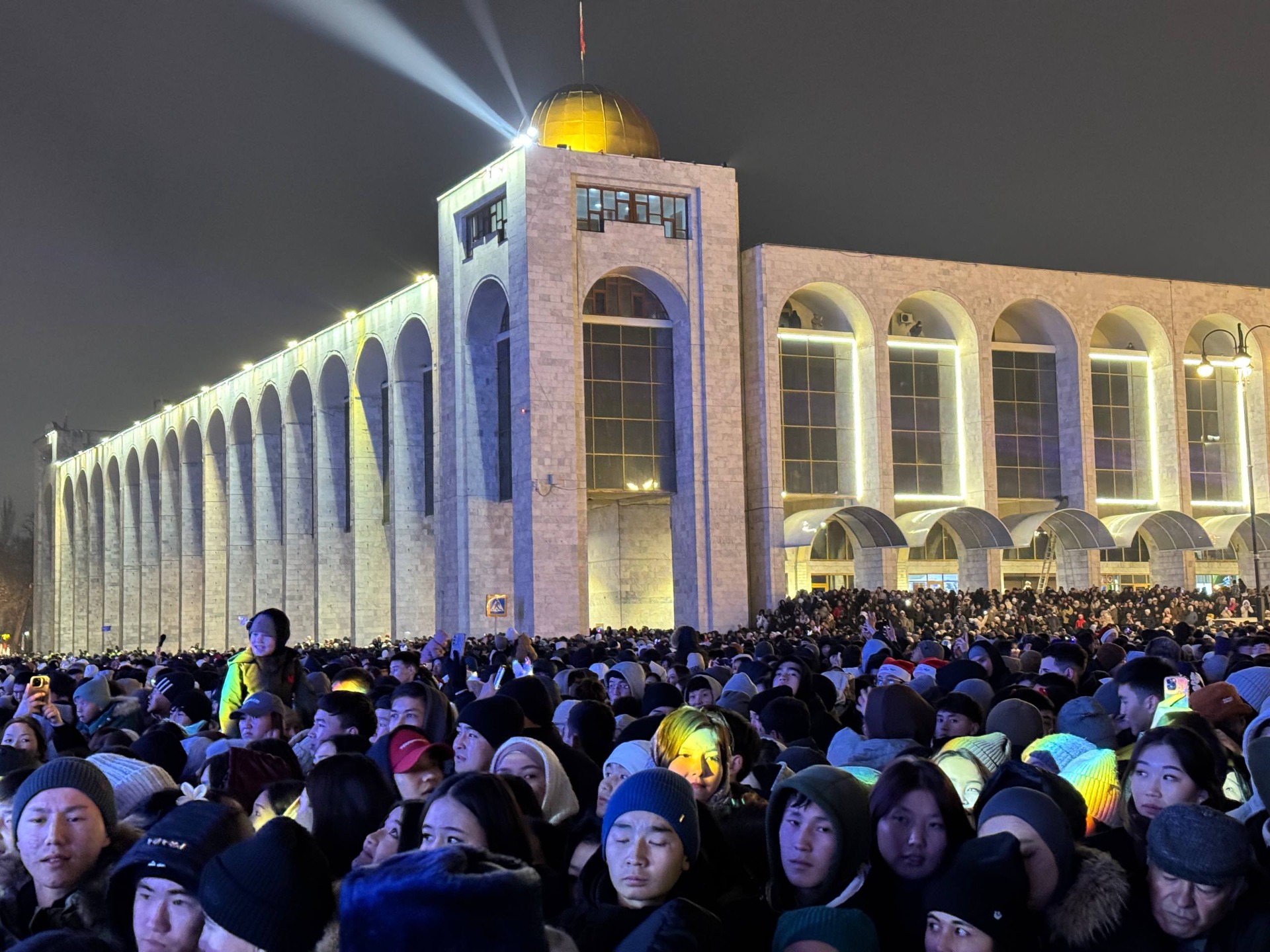 Несмотря на морозную погоду, центральная площадь была заполнена горожанами и гостями столицы. Мэр рассказал о достижениях муниципалитета, развитии и преображении Бишкека.
