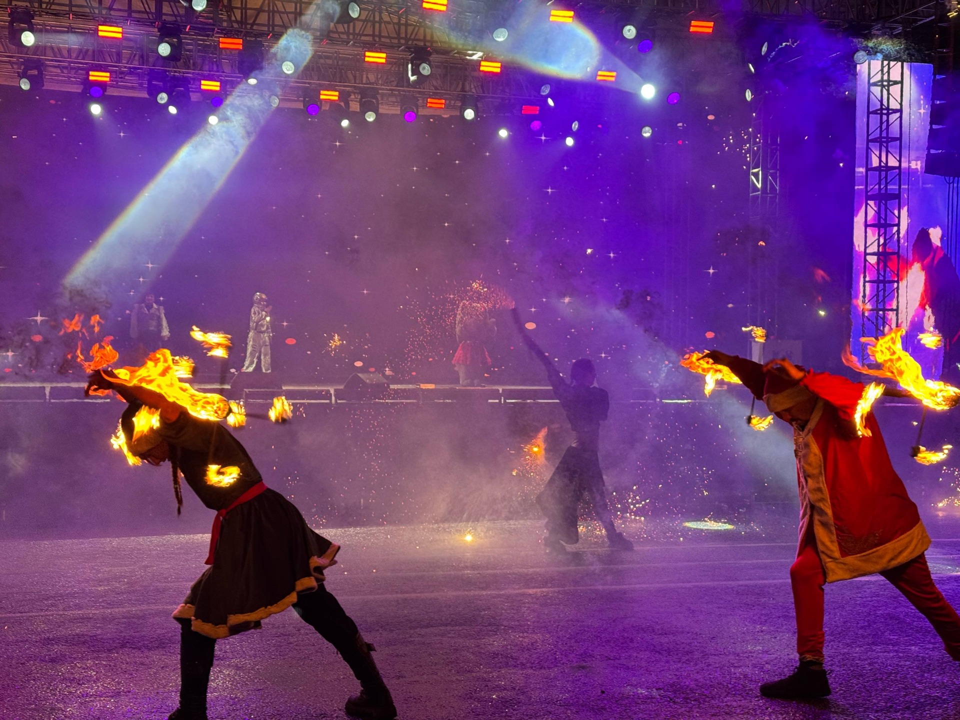 Концертная шоу-программа открылась песней «Бишкегим», ставшей гимном столицы, ее исполнил народный ансамбль «Семетей». А самой яркой звездочкой вечера стала Насыйкат Баймырзаева, девочка учится в школе-интернате для слепых и слабовидящих детей. Она готовится ко второй сложной операции на глаза, но несмотря на это, юная певица все равно пришла поздравить бишкекчан с наступающим Новым годом.