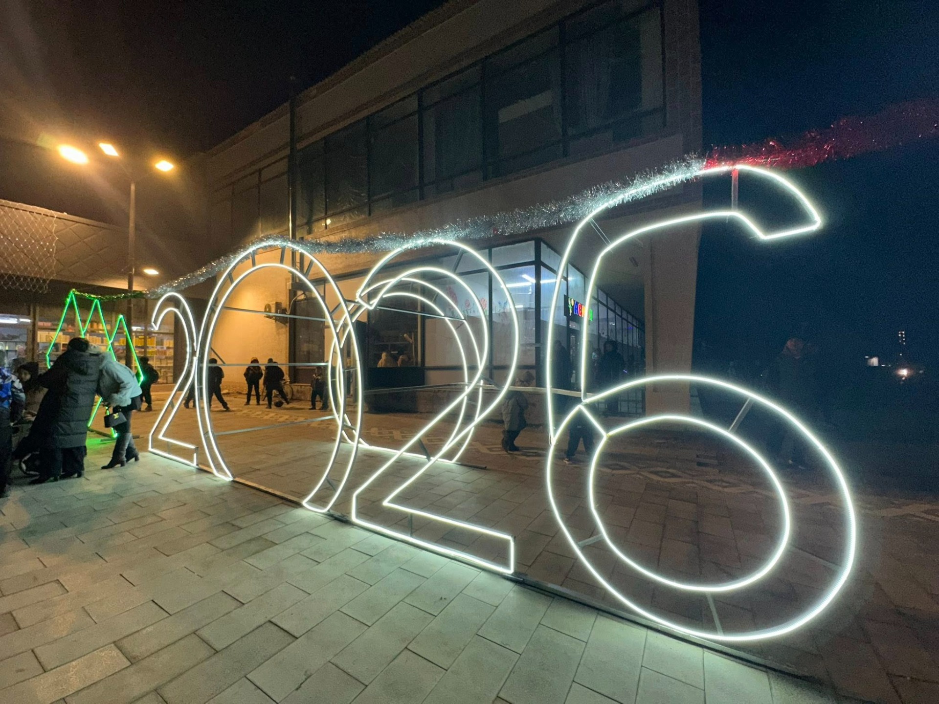 По ее данным, новогоднюю елку зажгли полномочный представитель главы государства Айбек Шаменов и мэр города Сейтек Кулубаев.