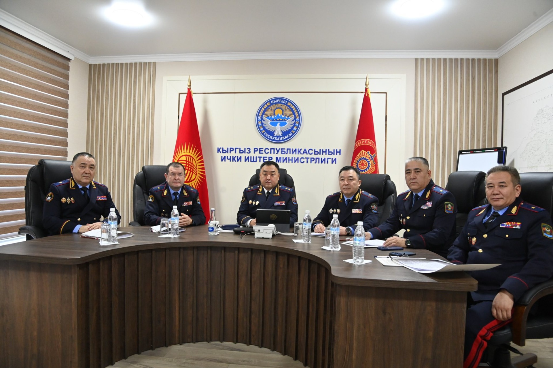 В МВД состоялось аппаратное совещание по вопросам обеспечения безопасности граждан с руководителями органов внутренних дел. В нем приняли участие глава ведомства Улан Ниязбеков, первый заместитель министра, заместители министра, а также руководители территориальных органов милиции.