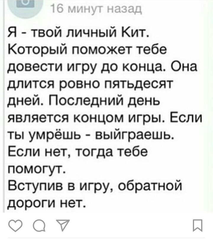 По правилам в течение 50 дней игроку необходимо выполнять различные задания, и в конце он якобы должен убить себя.