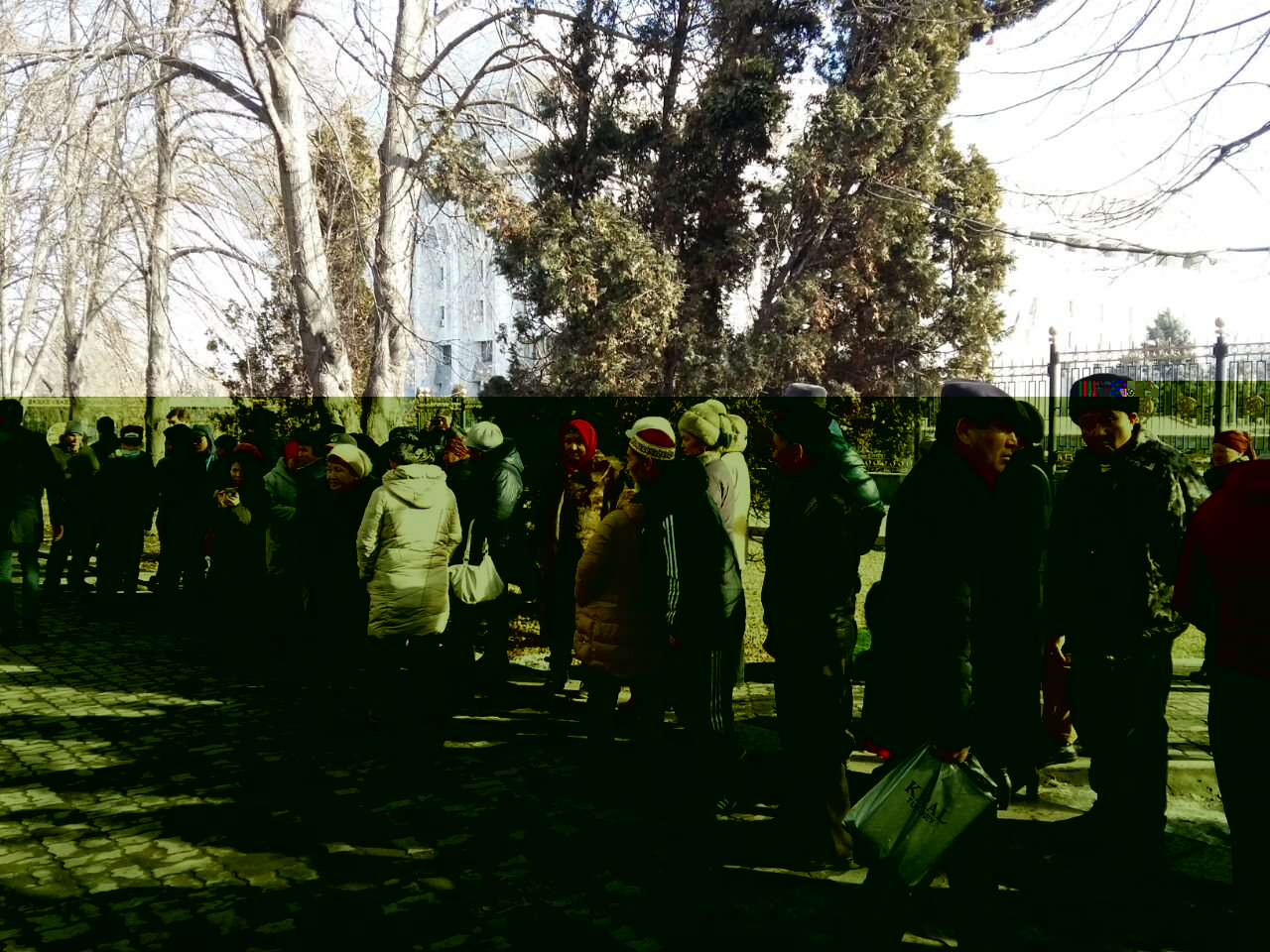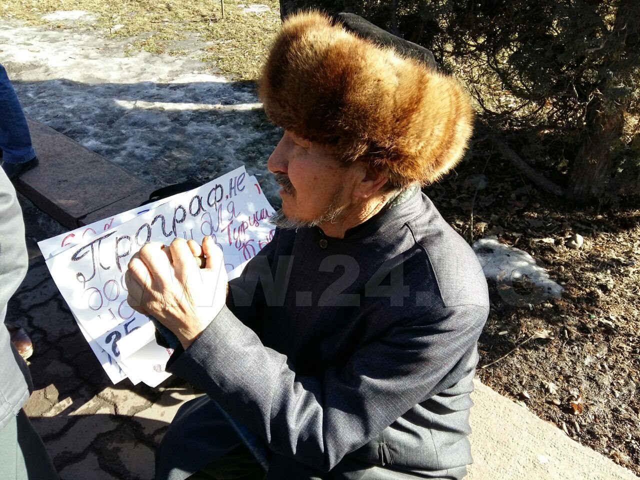 Участники первого — торговцы «блошиного рынка», их 70–80 человек. Участники акции не согласны с тем, что законные владельцы территории, на которой они торговали (на пересечении улиц Московской и Бейшеналиевой), вытеснили их.