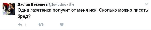 Депутат Жогорку Кенеша от СДПК Дастан Бекешев намерен подать в суд на одну из местных газет. Об этом он написал в Twitter.