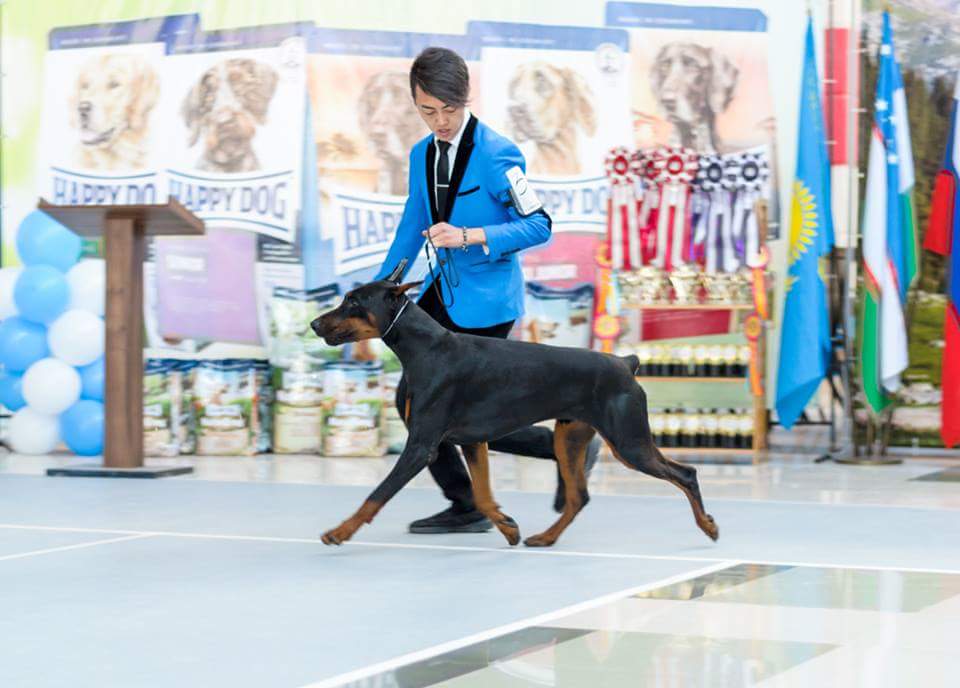 — На выставке собака должна показать умение двигаться по кругу рысью. В это время судьи оценивают ее движение, постав передних и задних конечностей, толчок задних, вымах, расположение плеча.