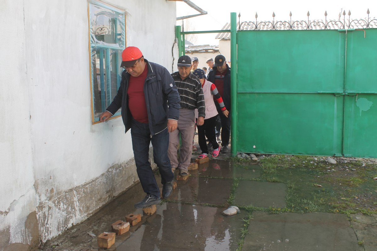 В селе Ат-Башы уровень подземных вод поднялся на 30 сантимеров, затоплены дворы и подвалы 69 домов.