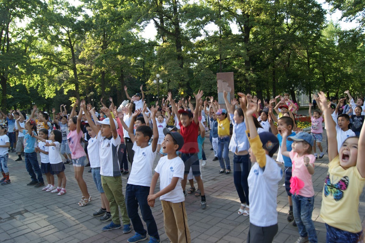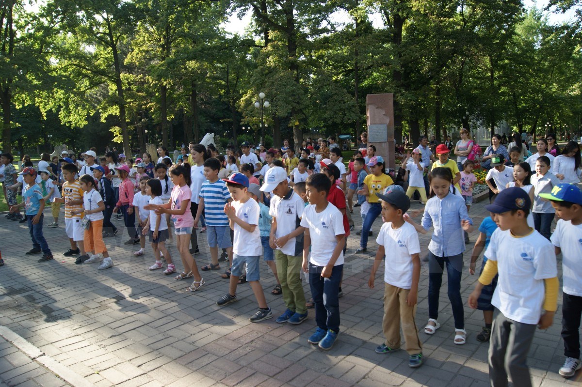 В мероприятии участвовали дети разных возрастов, их учил танцевать известный кыргызский танцор в стиле хип-хоп и поппинг Нурсултан Алибеков, который в прошлом году участвовал в российском шоу «Танцы» на ТНТ.