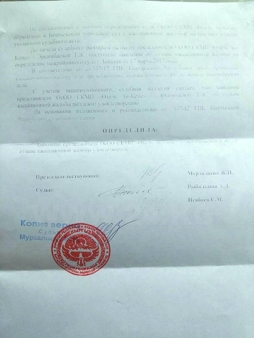 «Мы будем оспаривать захват отеля «Ак-Кеме» в международных судах», — заявил ИА «24-kg.com» его президент Руслан Сарымсаков.