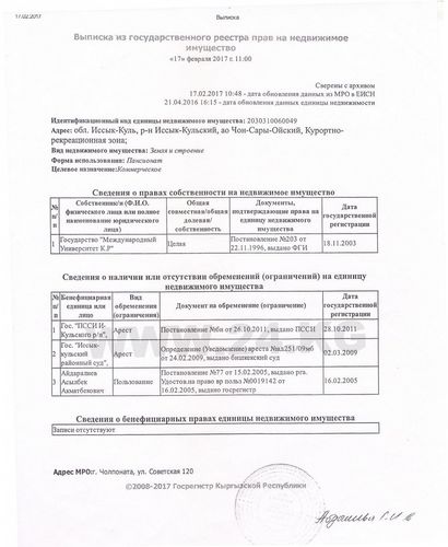 Тогда появилась идея передать объект Министерству юстиции. Однако суд вынес решение в пользу МУКа. В правительстве признают, что Межрайонный суд Иссык-Кульской области удовлетворил иск университета о передаче пансионата.