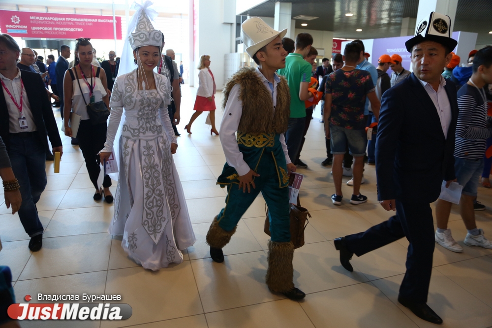 Молодожены из Кыргызстана в национальных костюмах привлекли внимание гостей выставки «Иннопром», проходящей в Екатеринбурге. Об этом сообщил Информационно-аналитический портал JustMedia.