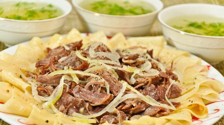 Это не традиционный бешбармак, который готовят, к примеру, на севере. Дело в том, что Нарынская область богата на мясо и бедна на злаки. Поэтому 70 процентов блюда — мясо, остальное — лапша. Некоторые и вовсе готовят блюдо без нее, называя его наарын. Это составная часть традиционной подачи мяса, где каждый кусок имеет свое значение.