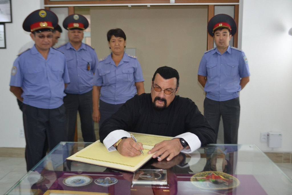 Американский киноактер, мастер восточных единоборств Стивен Сигал посетил Академию МВД Кыргызстана. Об этом сообщила пресс-служба учебного заведения.