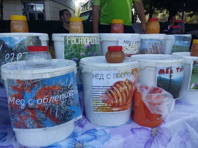 «Мы с супругом, – говорит его жена Ирина, – почти 30 лет занимаемся пасекой. Сами мы из Токмака, а пасека наша расположена в горах Шамши. Мы впервые принимаем участие в ярмарке в Бишкеке. В основном мы работаем в селе Бостери на Иссык-Куле, где алма-атинская клиентура хорошо разбирает нашу продукцию».