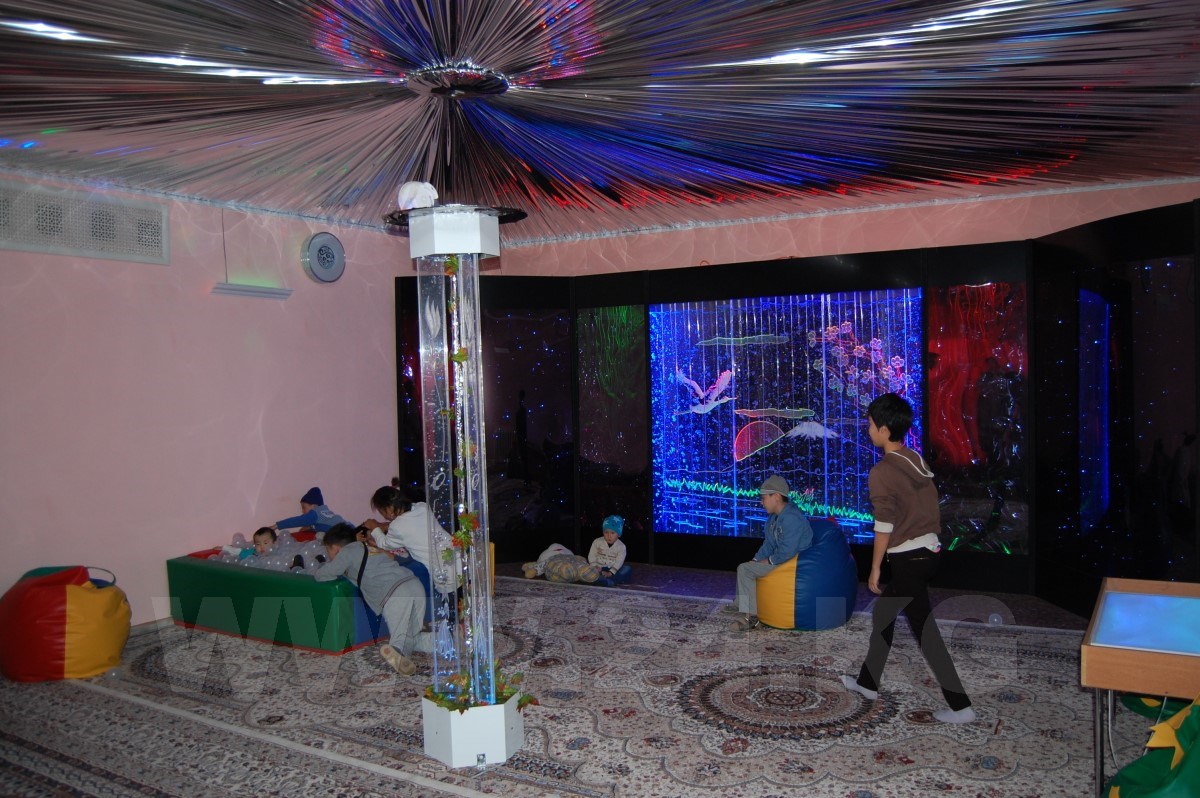 Как рассказала врач-реабилитолог центра Гульнара Койкелова, это помещение для релаксации, которое оказывает на детей успокаивающее и тонизирующее действие.