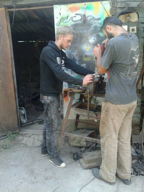 Прежде чем отправиться в Кемин, едем в гараж, забирать из ремонта байк Азата. Недели две назад он попал в ДТП. На дороге его подрезала машина, зацепила за номерной знак, и Азат вместе с байком пролетел по дороге несколько метров.