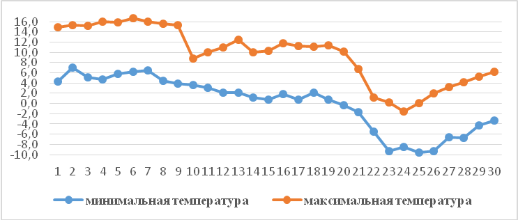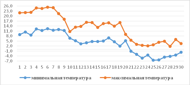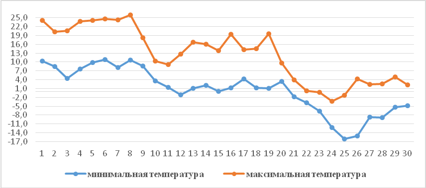 В Чуйской и Таласской областях в первых декадах ожидаются температурные колебания ночью от 0 до +7 градусов, днем +10...+21 градус. В третьей декаде похолодает ночью до -12 градусов, днем будет -2...+3 градуса. В предгорных районах и в Кеминской долине возможно понижение ночью до -15 градусов, днем -5.