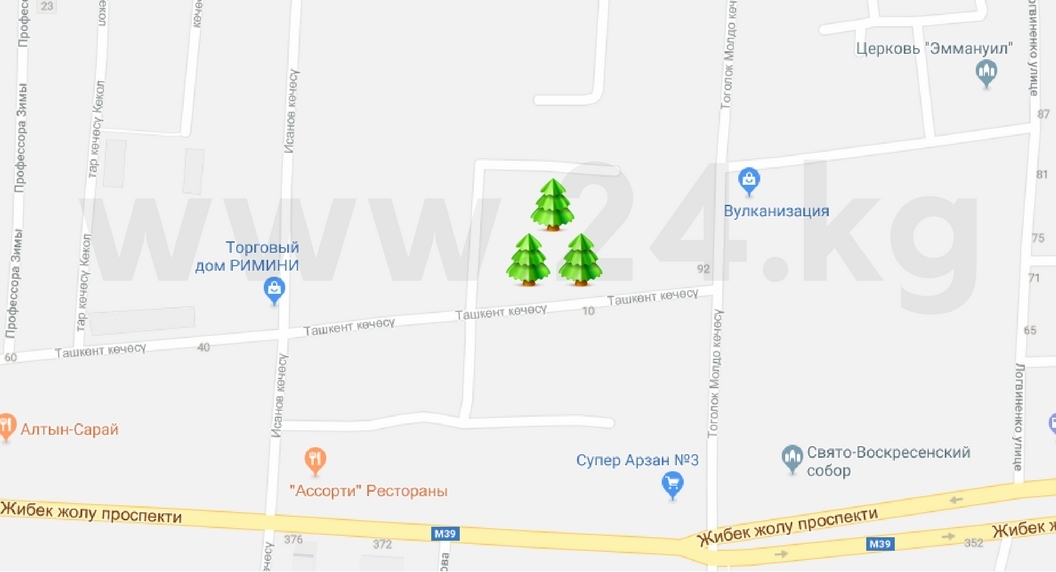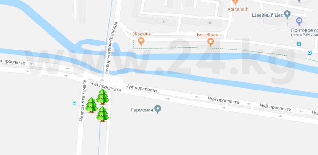Муниципалитет на безвозмездной основе предоставляет для продажи елок места на улице Ташкентской, 17 (магазин МП «Зеленстрой»), на пересечении улиц Медерова и Шабдана Баатыра, проспекта Чуй и улицы Чолпон-Атинской. Базары будут работать до 31 декабря.