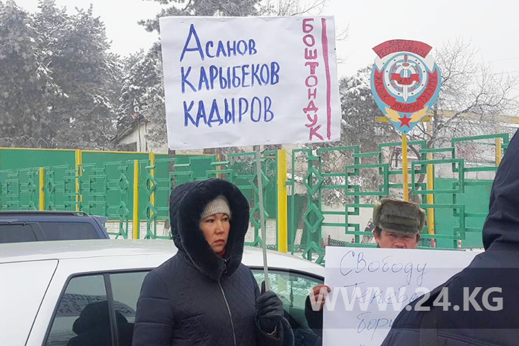 В Бишкеке около исправительной колонии № 47 проходит митинг сторонников политических заключенных Бектура Асанова, Кубанычбека Кадырова и Эрнеста Карыбекова, являющихся члена движения «Эл уну».