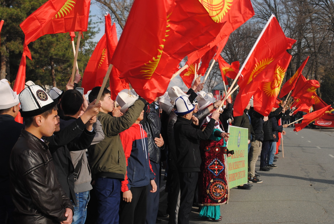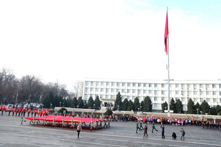 Более двух тысяч человек прошли по улицам, надев ак-калпаки и взяв в руки флаг Кыргызстана. Среди них были трудящиеся, студенты и преподаватели вузов и средних специальных учебных заведений и другие. Конечным пунктом маршрута стала центральная площадь, где прошел концерт.