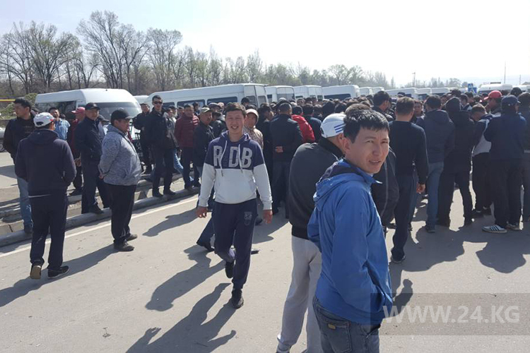 В Бишкеке продолжается забастовка водителей маршрутных такси. На работу не вышли около 2 тысяч 300 человек. На конечной остановке в 12-м микрорайоне сейчас собралось около 300 человек — все они водители бусов.