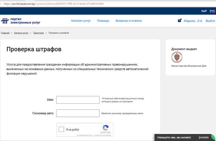 Зафиксированные нарушения можно проверить на портале услуг по адресу portal.tazakoom.kg