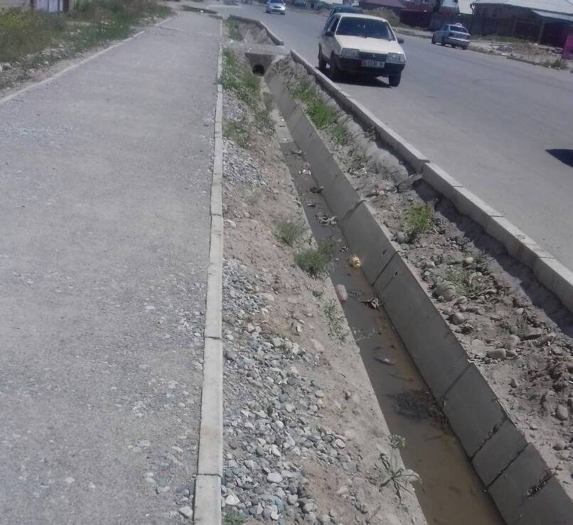 «Ремонт участка дороги (улица Ахунбаева на пересечении с улицей Чортекова (бывшая Кривоносова) закончили в прошлом году, но не доделали до конца. Арык, который идет рядом с дорогой, никуда не подсоединили. В итоге здесь скапливается вся дождевая вода с верхней части улицы», — сообщил он.