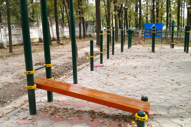Справедливости ради заметим, что есть в сквере спортивный уголок. Там установлено несколько крепких новых тренажеров для занятий спортом, есть и самодельная дорожка для бега, но такая убогая, что за столицу становится стыдно.