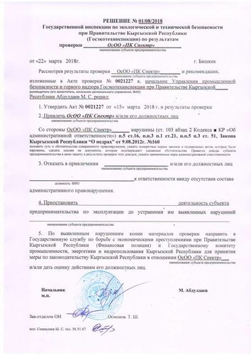 «Претензий к ОсОО «Спектр» у нас нет. Лицензию в 2010 году компания получила на геологоразведочные работы. Она продлена до декабря 2018 года», — пояснил он.