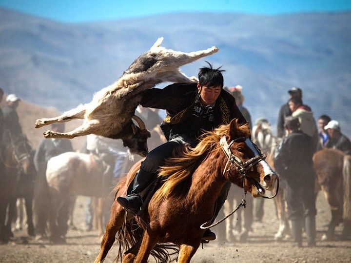 Во время игры всадники борются за тушу козла, ей необходимо не только завладеть, но и суметь забросить ее в так называемые ворота в виде большого казана.