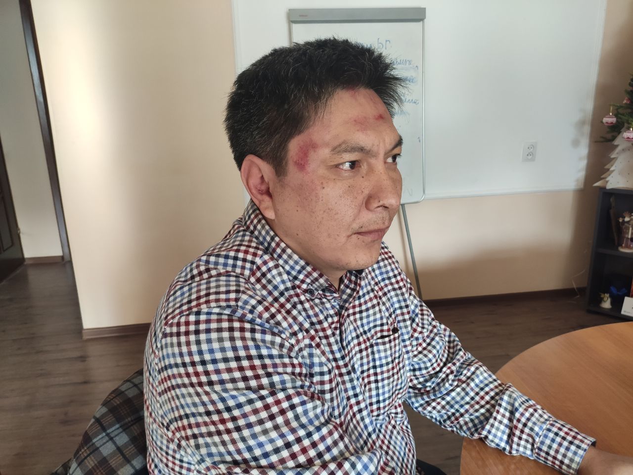 По его словам, двое молодых людей плотного телосложения напали на него во дворе офиса по улице Токтогула. «Один ударил сзади, когда я упал, второй стал пинать. В руках был телефон, его отобрали. Больше ничего не забрали. Не думаю, что цель — ограбление. Скорее, хотели напугать», — сказал Болот Темиров.