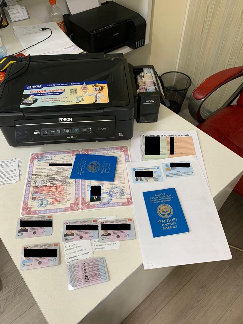 Установлено, что владельцы компании М.А. и М.Б. за сумму от 20 тысяч сомов изготавливали поддельные документы, которыми пользовались мигранты за рубежом.