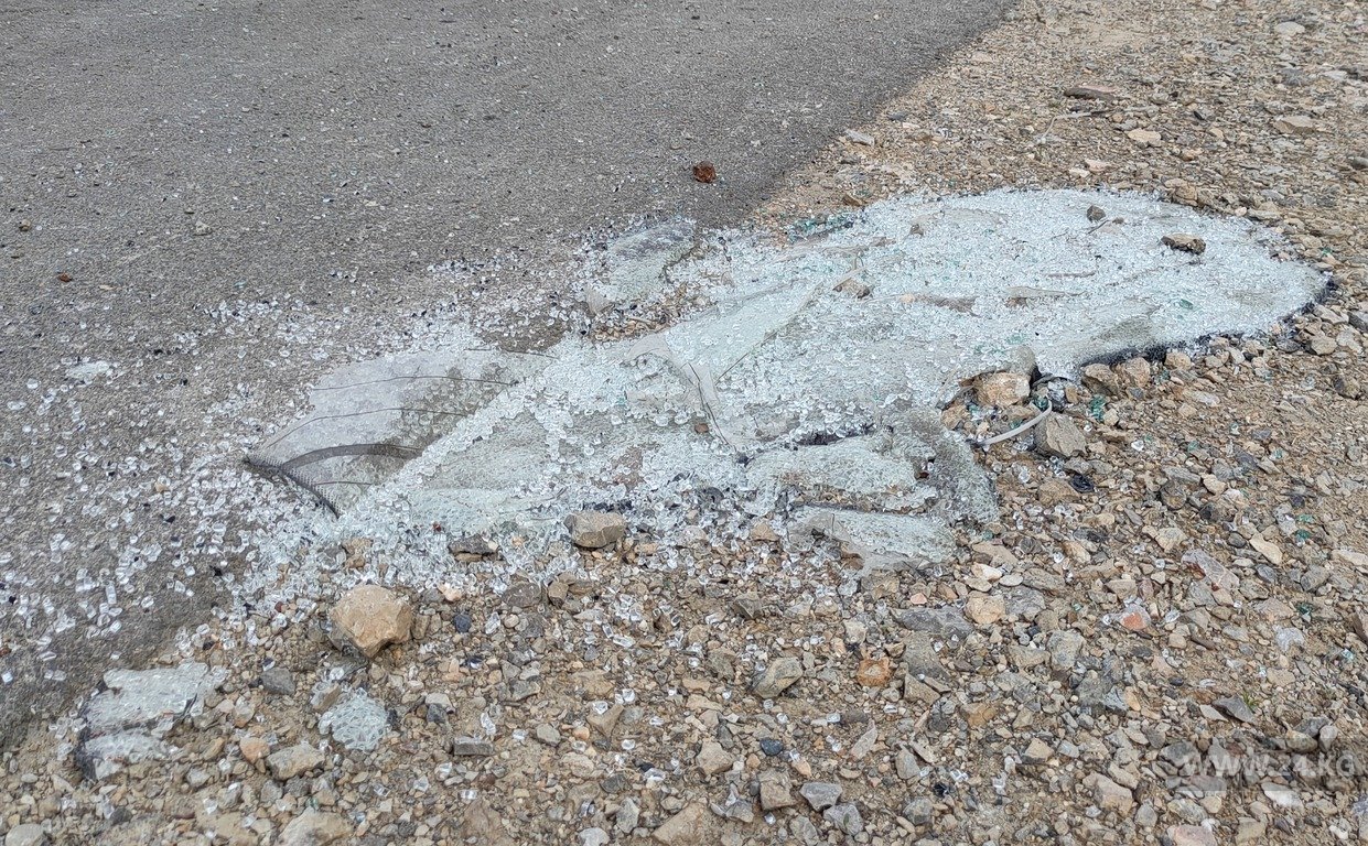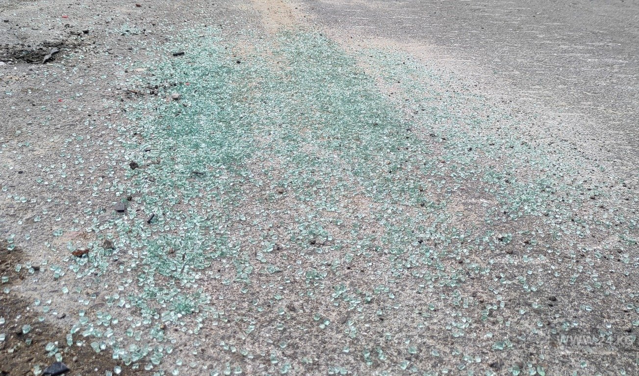 По всей проезжей части остались следы от военной техники и осколки. По обочинам разбросаны бамперы от машин и другие детали.