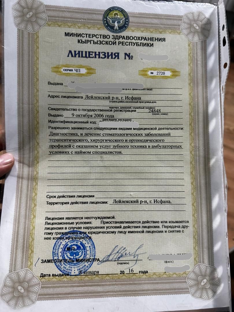 ГКНБ пресечена деятельность незаконно функционирующего стоматологического центра в Раззакове, работавшего по поддельной лицензии.