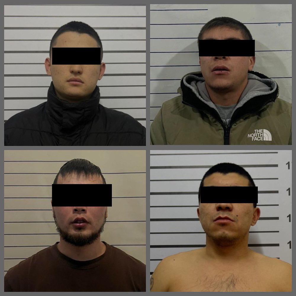 Оперативники установили личности подозреваемых. К.Б., 1995 года рождения, А.Н., 1998 года рождения, А.Ж., 1997 года рождения, и М. у. Б., 2004 года рождения, задержаны и водворены в СИЗО-1. Следствие продолжается.