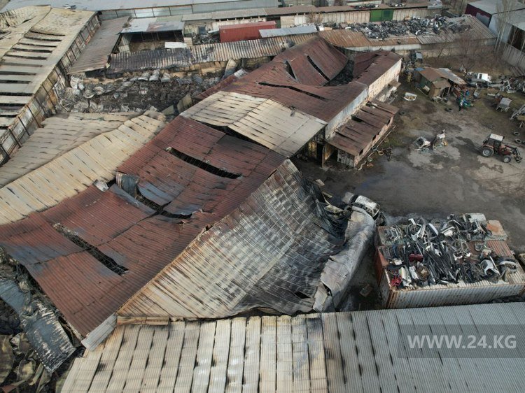 В результате ночного пожара на рынке «Кудайберген» сгорели 2 ангара, 7 боксов и 1 станция техобслуживания. По данным МЧС, общая площадь возгорания составила 3 тысячи квадратных метров.
