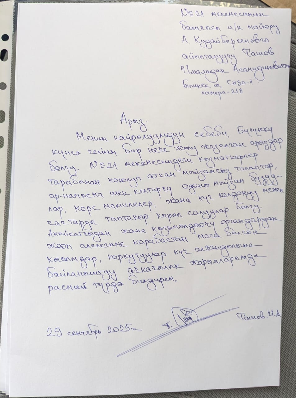 Напомним, что Имамидин Ташов задержан в апреле прошлого года в селе Каинды Чуйской области. По данным ГКНБ, в Кара-Балте он якобы планировал организовать временный штаб по консолидации сил для акции протеста с последующим захватом власти.