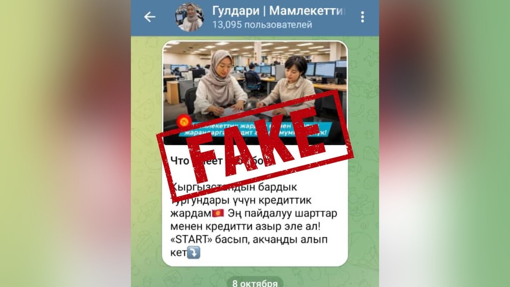 В сообщении говорится о распространении мошеннических схем в мессенджере Telegram, в частности через ботов «Гулдари | Мамлекеттик жардам» (@Guldari_kredit_bot) и «Гулдари | Социалдык кредит» (@credit_guldari_bot).