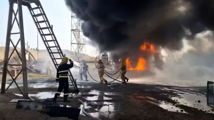В Кадамджайском районе горит нефтеперерабатывающее предприятие