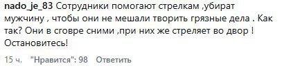 - «Сотрудники помогают стрелкам, убирают мужчину, чтобы он не мешал творить грязные дела. Как так? Они в сговоре с ними, при них же стреляет во двор! Остановитесь!» — возмущены люди.
