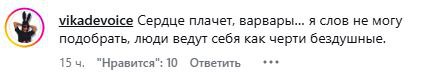 - «Сердце плачет... Варвары... Я слов не могу подобрать, люди ведут себя как черти бездушные».