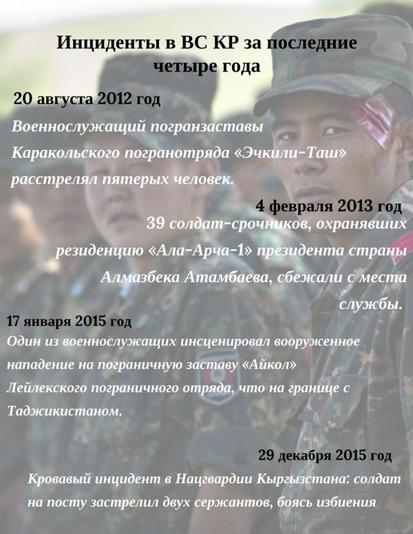 Последний трагический случай в армии произошел 19 мая: 20-летний боец стал жертвой взрыва снаряда в Балыкчи. Причиной могло стать неосторожное обращение с боеприпасом.