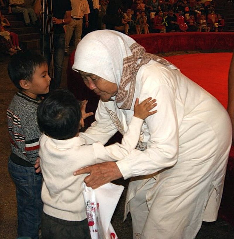 Четырехлетняя Ясмина оказалась в цирке впервые и еще не знает, что ее ожидает на представлении, но, по ее словам, ей здесь уже нравится. Сопровождающая ее бабушка успела рассказать внучке, почему в цирке сцена круглая и как она правильно называется.