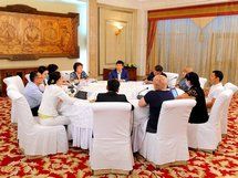 Оказалось, что встречу будут снимать для передачи. Темир Сариев ждать себя не заставил и, поприветствовав собравшихся, сообщил, что готов быть в полном распоряжении прессы и на вопросы будет отвечать на двух языках.
