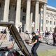 Замечаю причудливую конструкцию. С правой стороны ее используют паркурщики, с левой — велосипедисты. Выполняют трюки на потеху публике. На газоне уличные художники расставили холсты и рисуют граффити. И все это в десятке метров от Дома правительства.